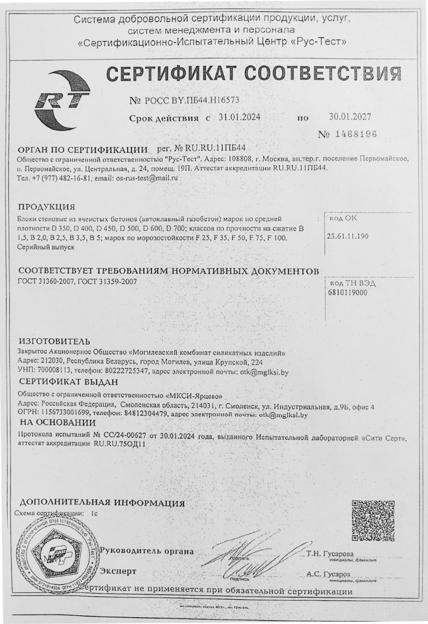 Марка КСИ указывает на производителя и технологию изготовления газобетонных блоков. Могилевский КСИ – это гарантия качества и надежности.